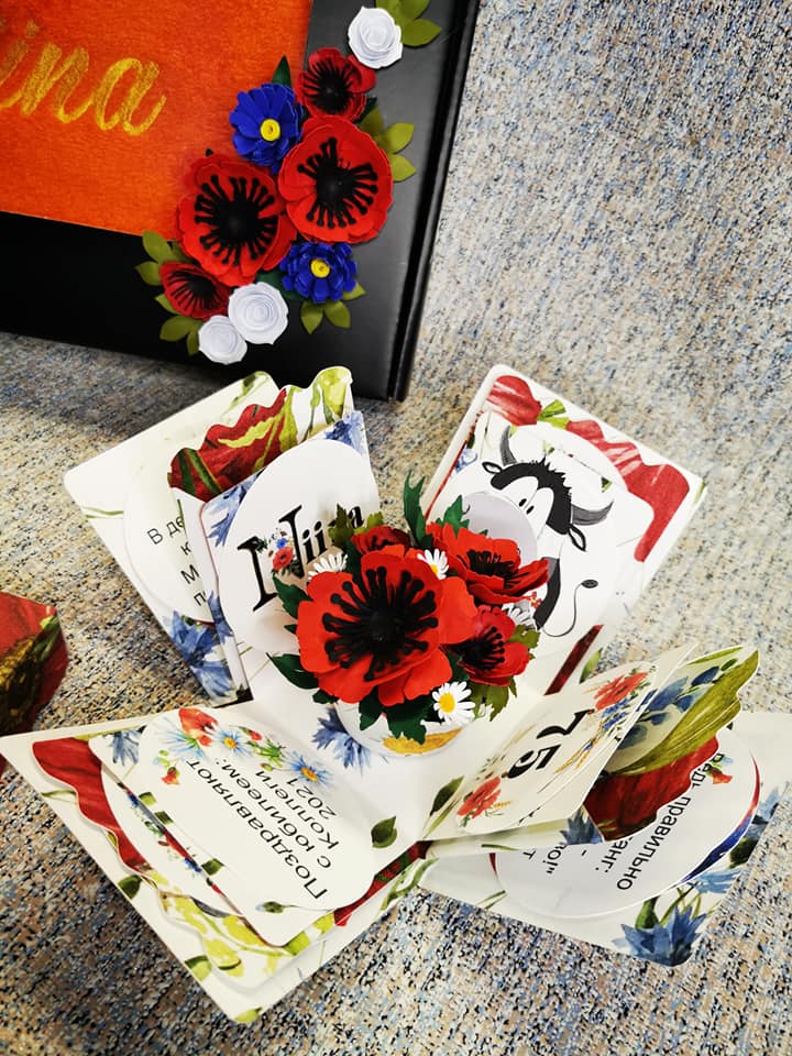 Kolme kihiline üllatus karpkaart toob saajale palju rõõmu. Kaarti avades leiab saaja lillekorvi ja palju õnnitlusi. Teisel kihil on rahataskud. Kolmandal kihil südamlik luuletus.