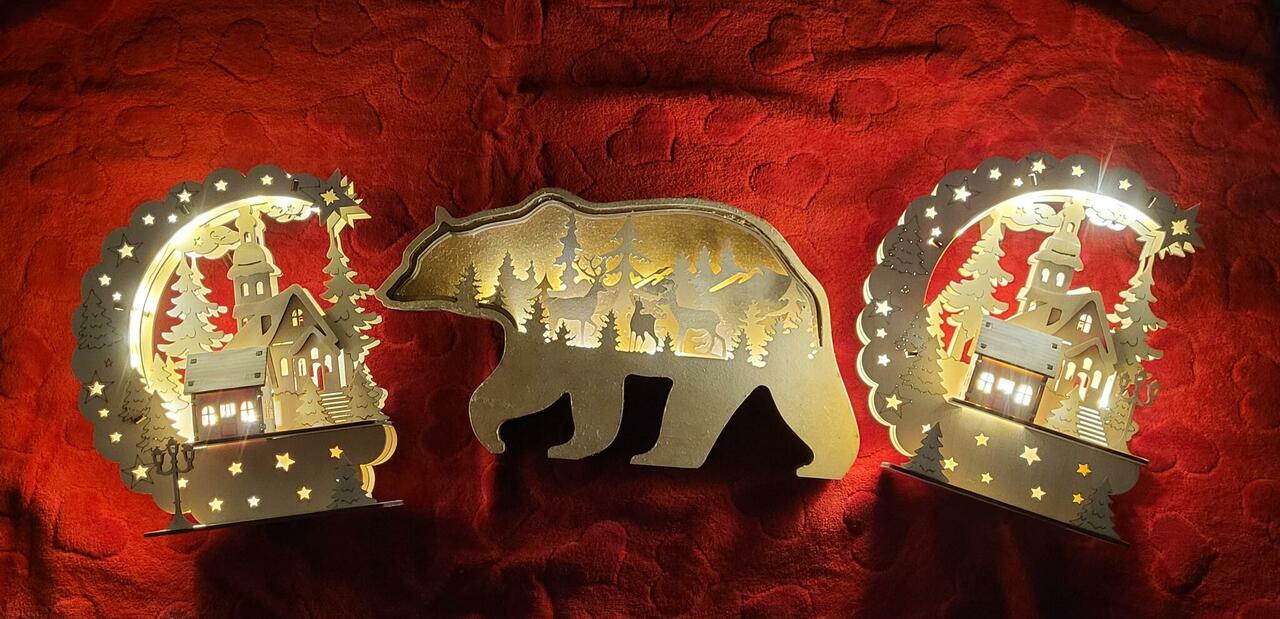 Puidust valmistatud led valgustid on tehtud käsitööna.