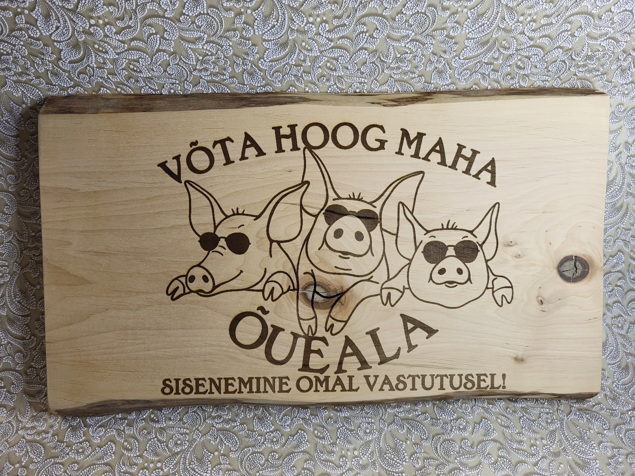 võimalik teha ka Teie mõõtudega, hind sõltub sildi ja teksti suurusest - küsi hinnapakkumist