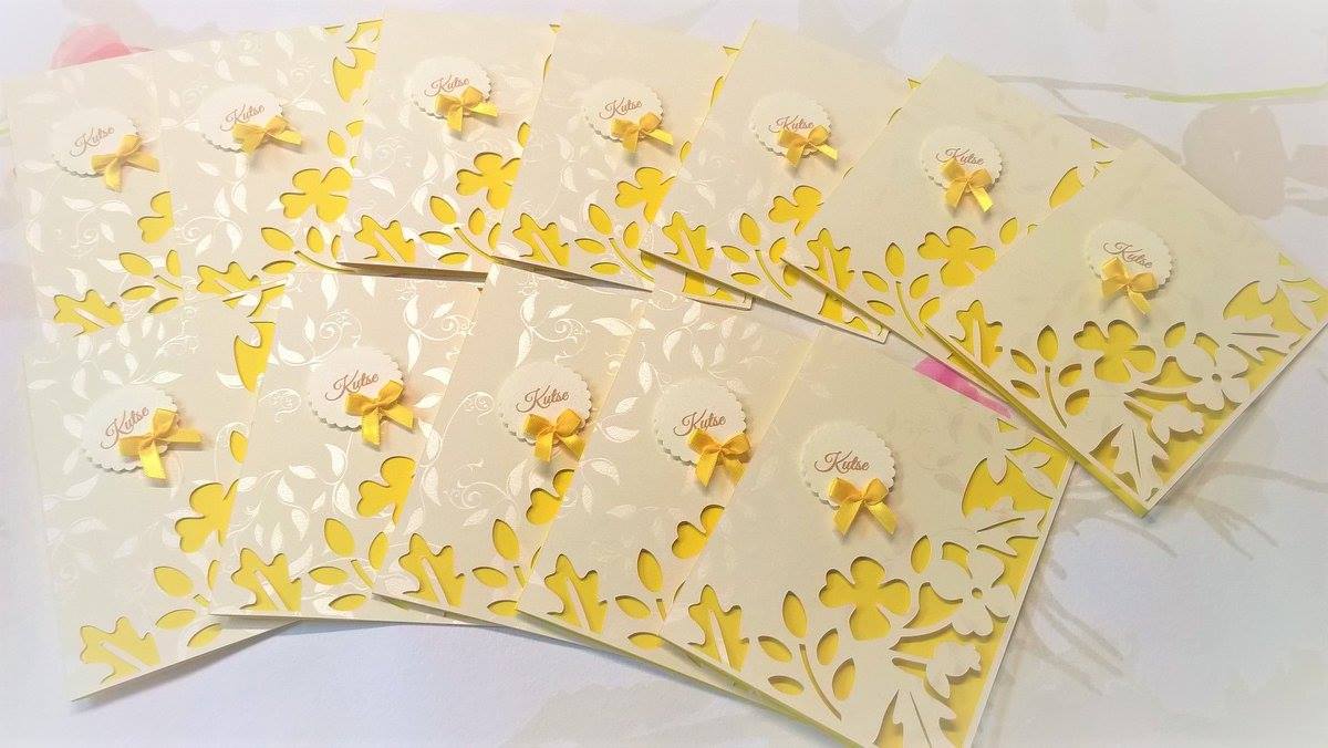 Pulmakutsed on valmistatud dekoratiivpaberist. Kutsetele lisaks võib tellida ümbrikud (1 eurot) Kutsehinna sees on teksti trükk.